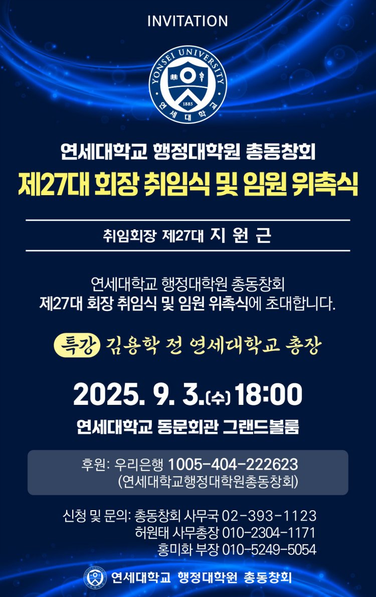 ¿¬¼¼´ëÇб³ ÇàÁ¤´ëÇпø Ãѵ¿Ã¢È¸ Á¦27´ë ȸÀå ÃëÀÓ½Ä ¹× ÀÓ¿ø À§ÃË½Ä (2025.09.03)